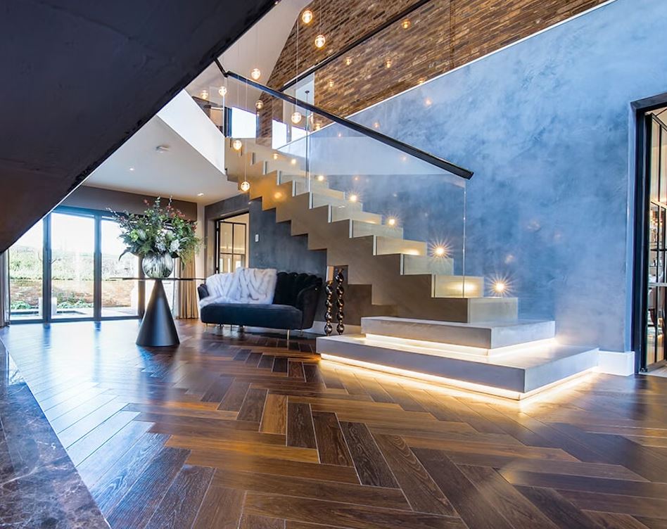 Lighting has moved from ceiling fixtures to built-in design elements, and staircases are no exception. LED-integrated stairs use concealed lighting beneath each tread or within railings to add a soft, ambient glow. These features not only provide safety in low-light conditions but also elevate the atmosphere of the entire space.